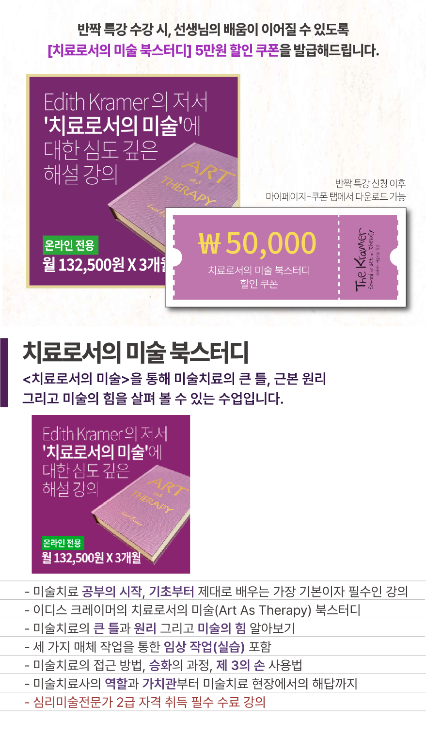 - 이디스 크레이머의 책, [치료로서의 미술]로 강의합니다. 교재가 없으신 분들도 수강하실 수 있습니다.